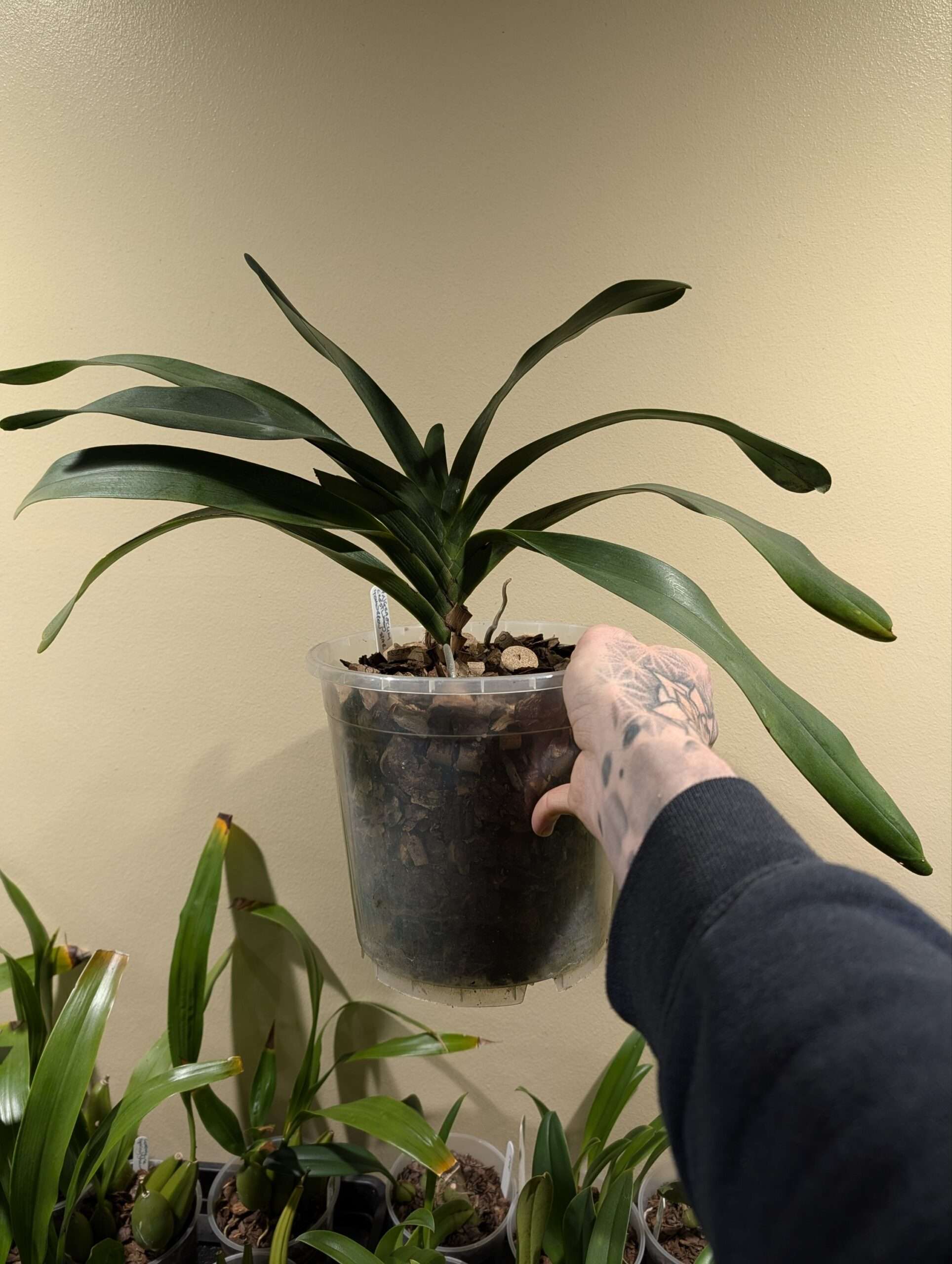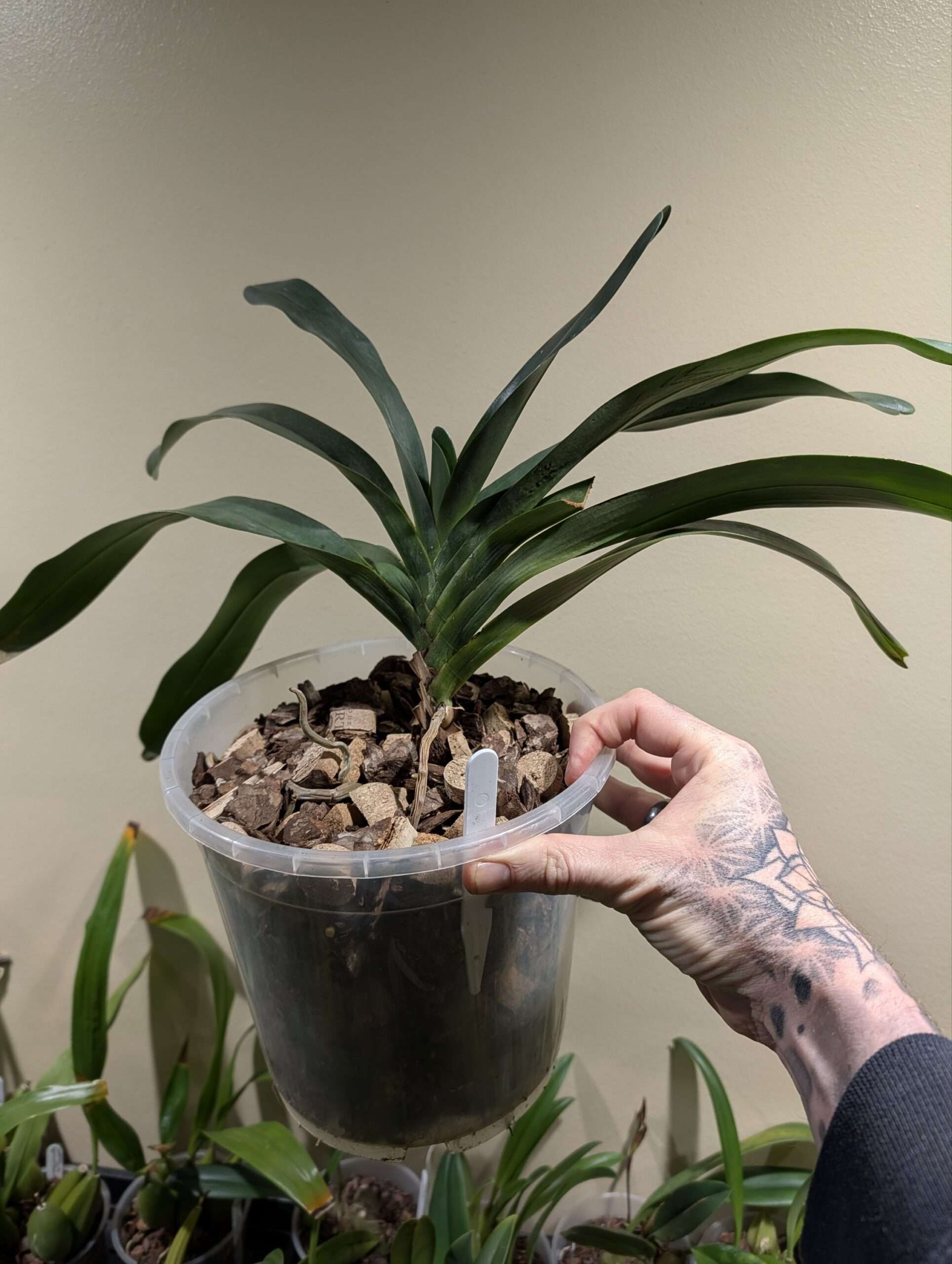 Please note plants pictured are examples only. This plant is home propagated. Angraecum resent root disturbance and may refuse to bloom for several years after repotting.