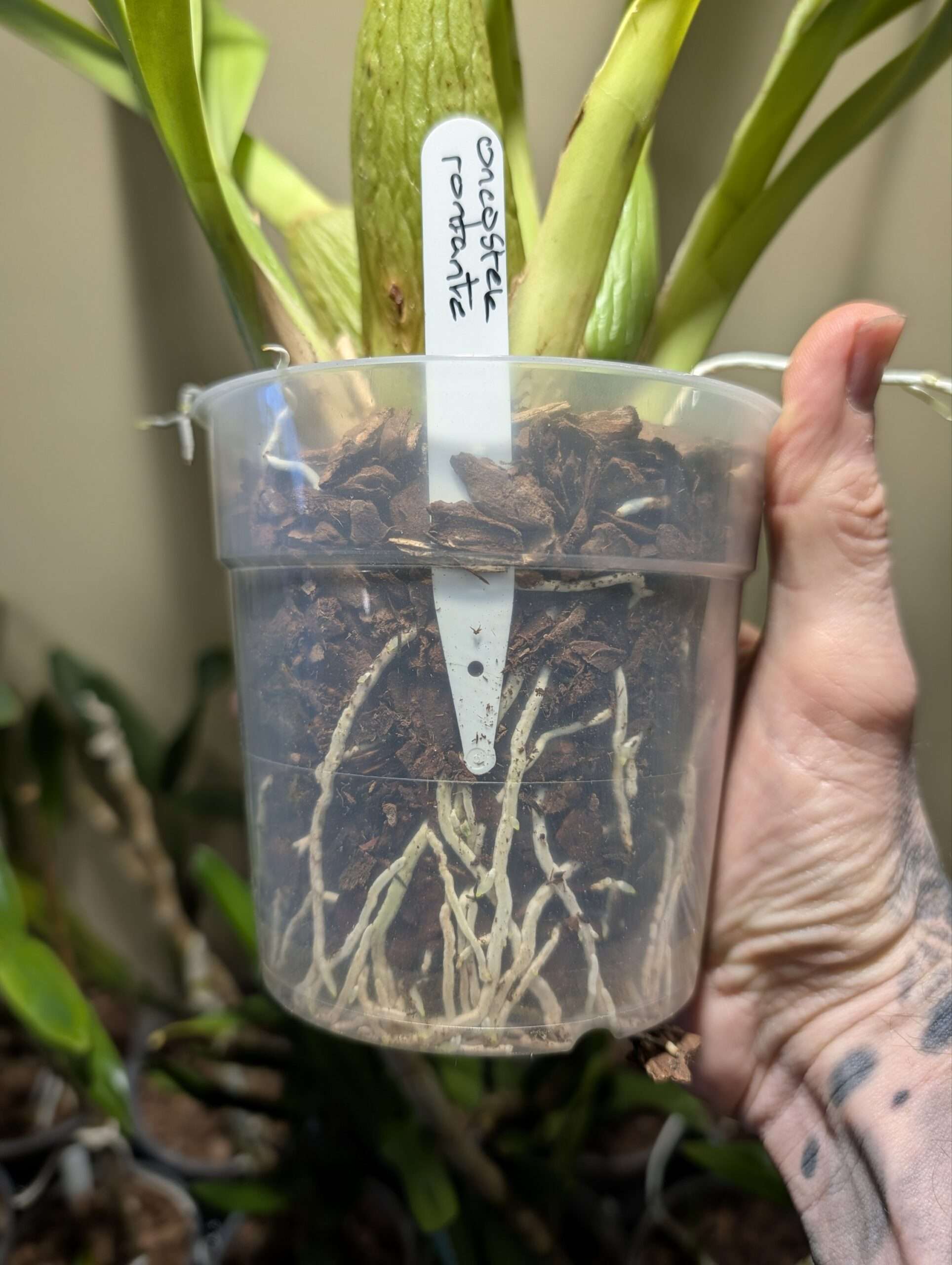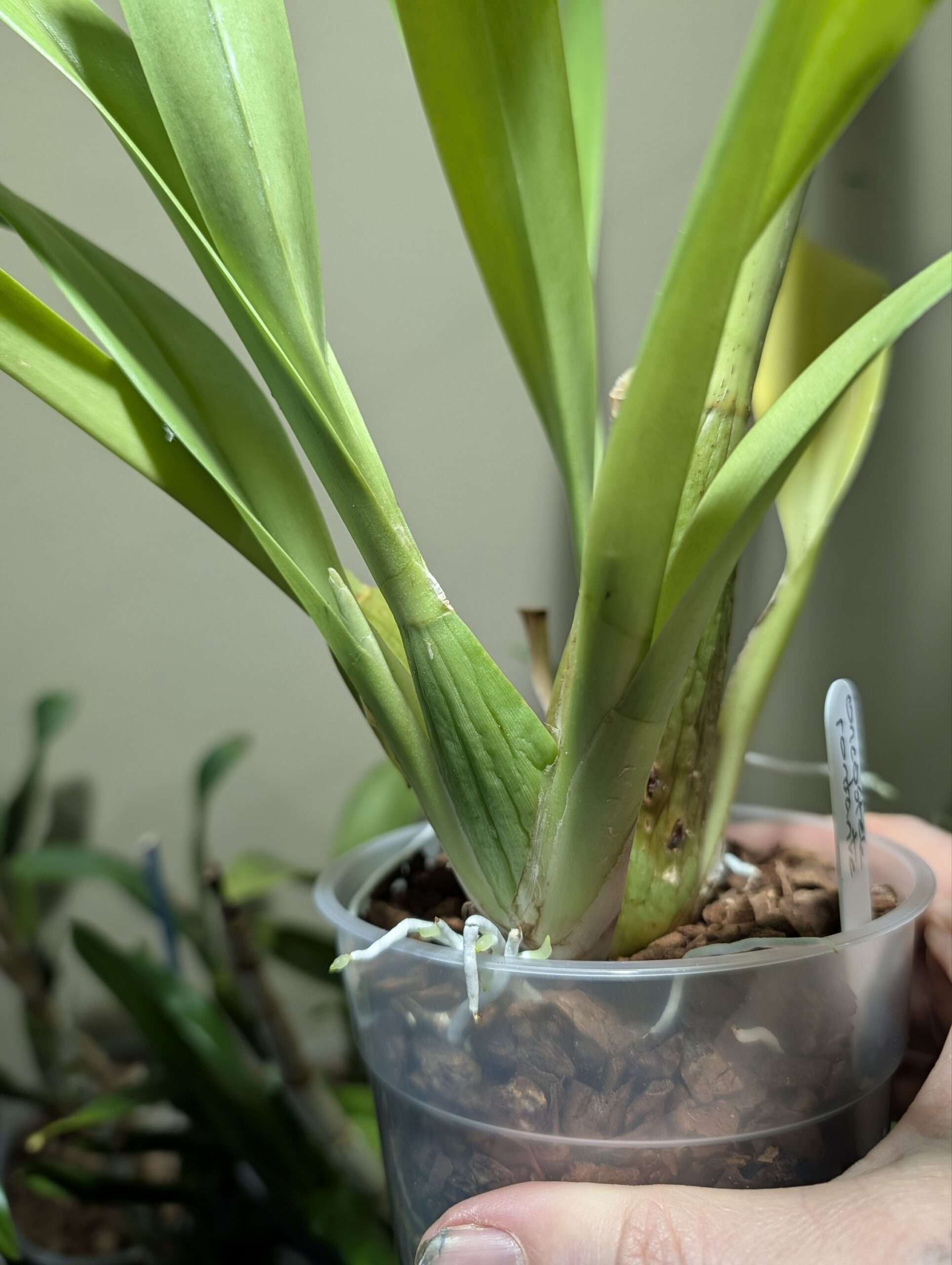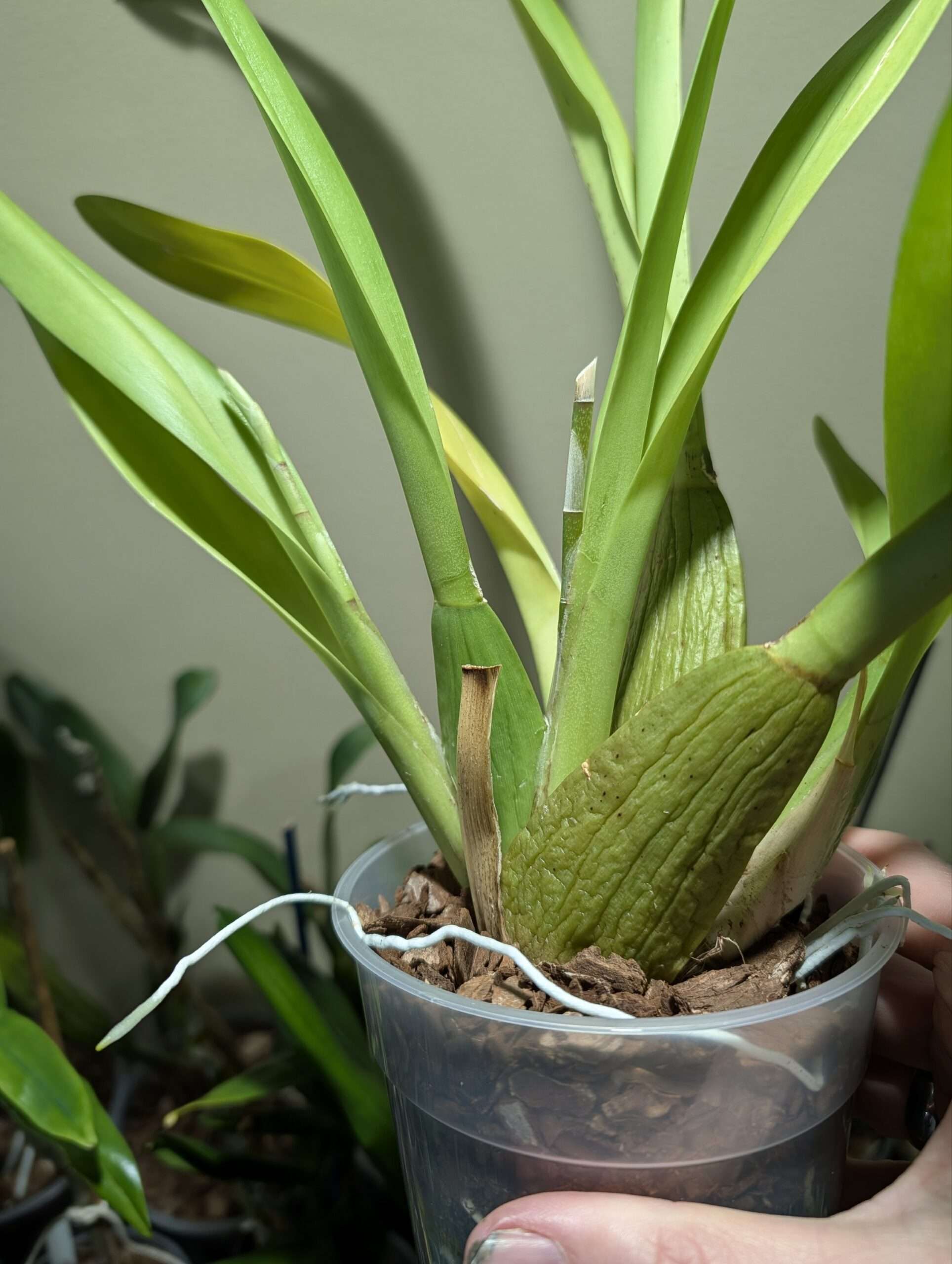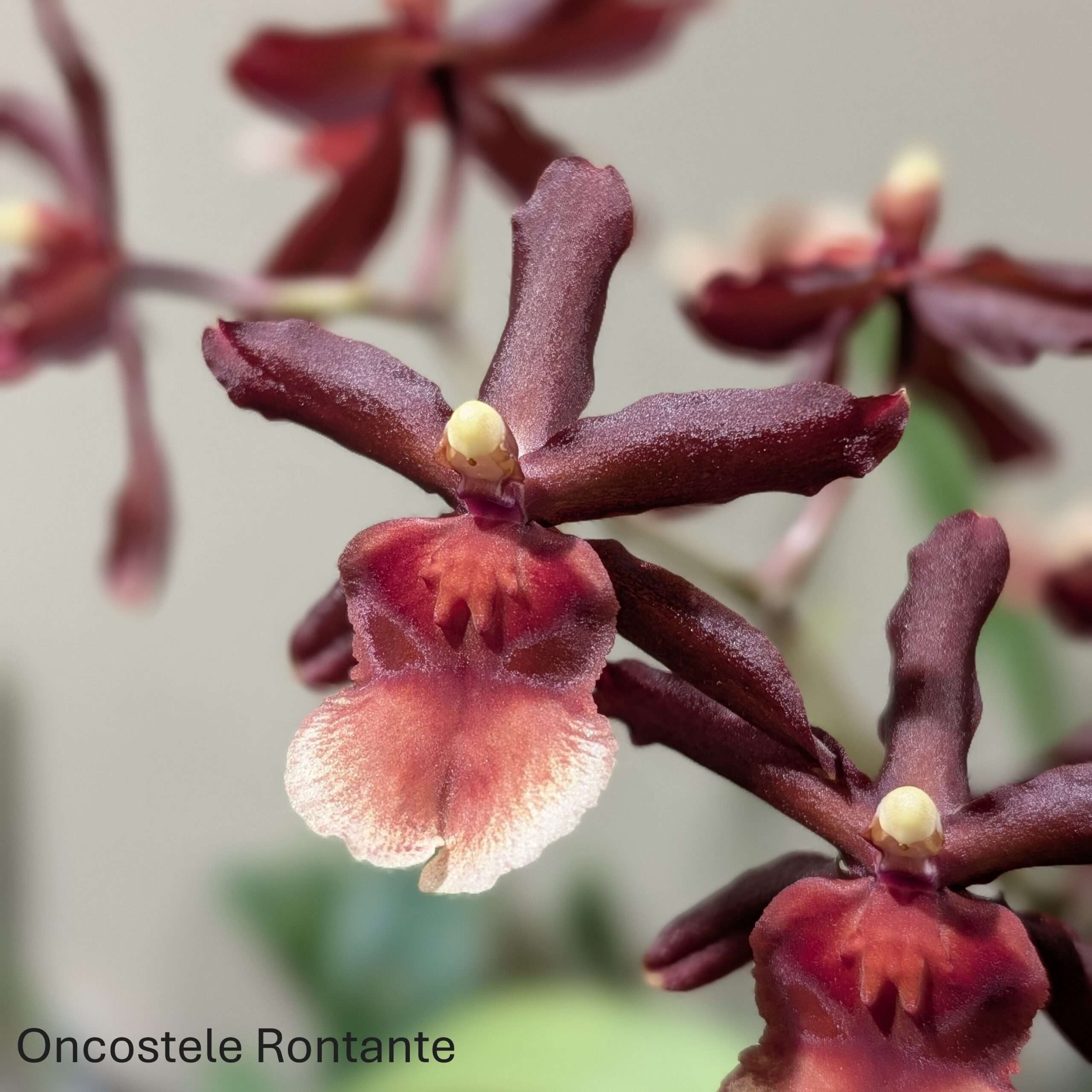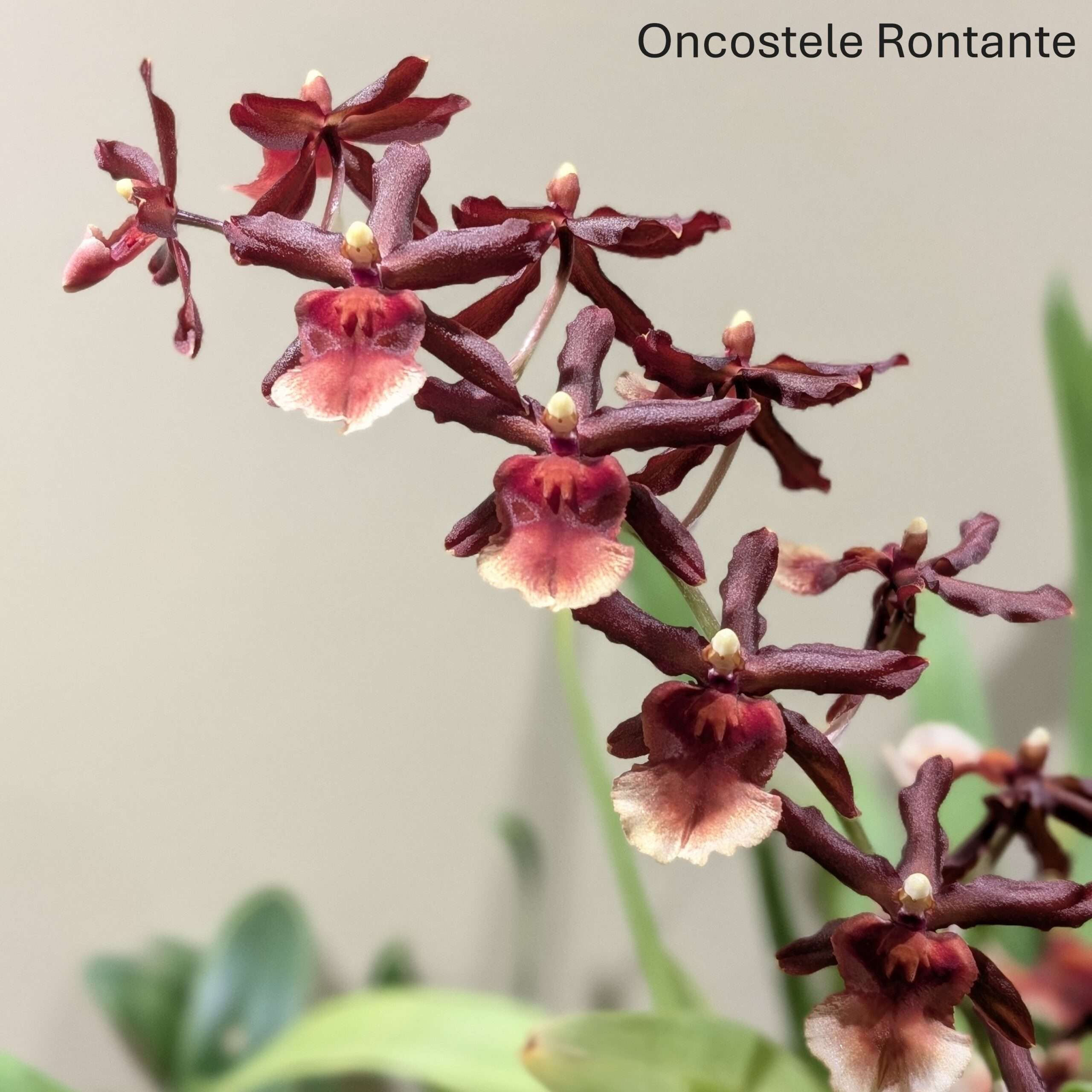 Plant Description: Medium sized plant with pairs of broad strappy leaves above tall hard pseudobulbs. Inflorescences produced from maturing growth, often two per pseudobulb. An easy to grow and very rewarding hybrid.